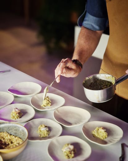Coges un vaso, tipo sidra, y añades lentejas Puy cocidas, un par de puñados de kale bien cortadita, unas láminas de pera, unos trocitos de apio, unos dados de queso de cabra y todo ello con un aliño cítrico, el resultado sería una Ensalada Arcoíris donde ni hay lechuga, ni tomate ni cebolla cortada en juliana a la que tanto nos tienen acostumbrados en los restaurantes de media España. La receta pertenece al libro Ensaladas Completas. Nutritivas, saludables y con fruta y verdura de temporada, de Emily Ezekiel, traducido al español por la editorial Cinco Tintas. Con ilustraciones y fotografías, el libro tan pronto muestra los productos de temporada como intenta seducir con el plato final. Ensaladas para cada estación del año: frías, templadas, crujientes, líquidas… y con ellas, sus aliños, crudités, toppings y encurtidos: ensalada de calabacín a la plancha con mozzarella y frégola; ensalada vietnamita; bol de ensalada a base de frutos rojos con jarabe de arce, limón y vainilla… Aliño con condimento zaatar al verde con jalapeño; salsa de chiles mexicanos encurtidos; semillas umami tostadas… En definitiva, un libro creativo, tentador y muy original.