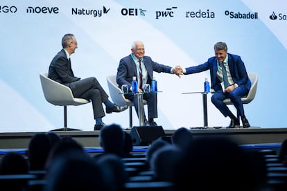 “[Donald] Trump y [Vladímir] Putin tienen un acuerdo que forjaron en Alaska, y Trump es el encargado de que [Volodímir] Zelenski lo acepte. Le ha dicho que esta guerra tiene que acabar con la cesión de territorios, y que si no lo hace, Rusia la destruirá”, destacó Josep Borrell, ex alto representante de la Unión Europea para Asuntos Exteriores y de Seguridad, en la primera jornada del WIP, que organiza PRISA, el grupo editor de EL PAÍS, en Barcelona. El expresidente de Colombia Juan Manuel Santos, Premio Nobel de la Paz, afeó el “muy lamentable” enfrentamiento entre el actual presidente de su país, Gustavo Petro, y el de Estados Unidos en torno a la lucha contra el narcotráfico. “Posiblemente, ganen los dos presidentes”, aseguró, “pero pierden los pueblos de Estados Unidos y Colombia”.