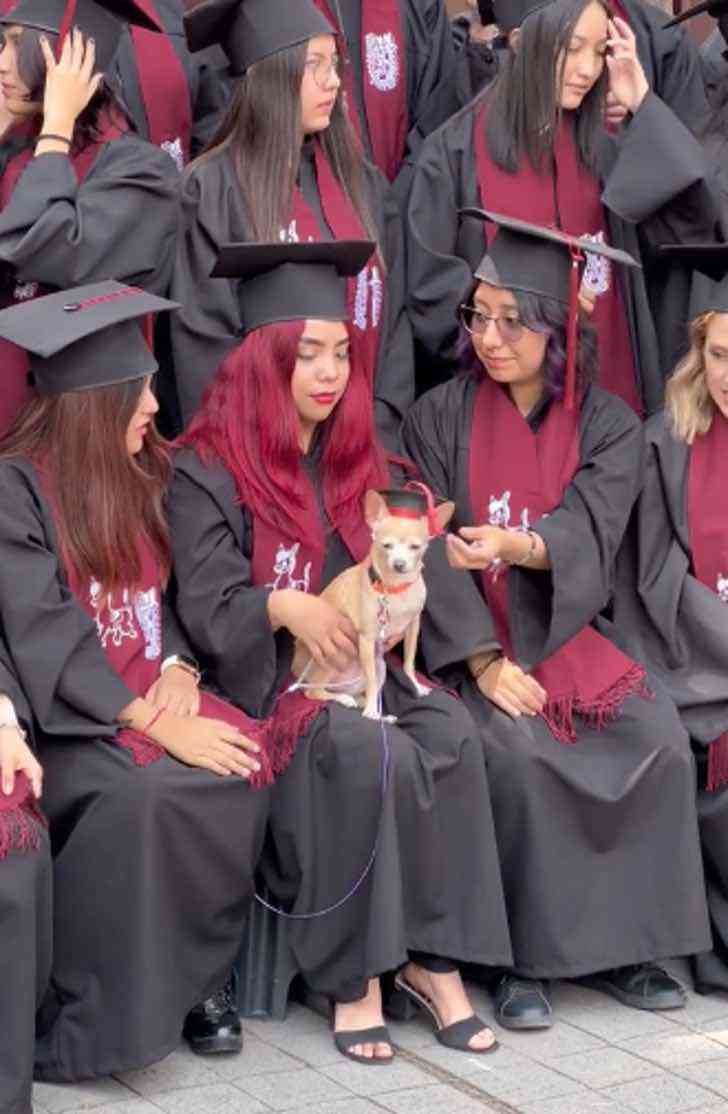 Según información de SDP Noticias, en TikTok se hizo viral un video que captó el momento preciso en que la alumna recién graduada llevó a su perrito a su ceremonia de titulación, y en donde incluso le puso su propio birrete pequeñito.