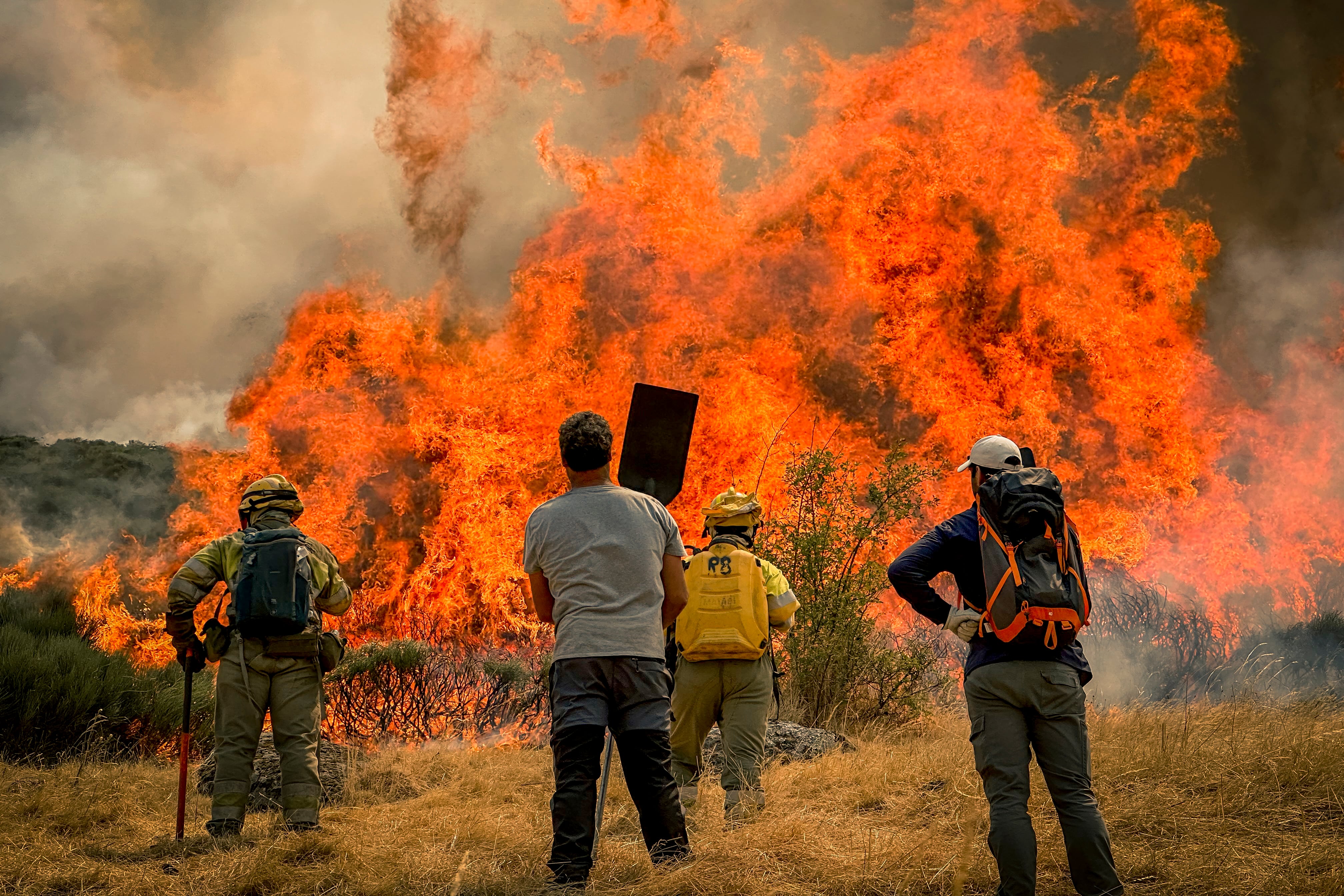Mientras tanto, los vecinos de los municipios cercanos se echaron a la montaña para llevar comida, agua y para ayudar a hacer cortafuegos a los bomberos forestales que luchaban contra una lengua de fuego kilométrica que amenazaba con avanzar hacia sus casas. “Se agradece la ayuda”, decía uno de ellos cerca de una llama que superaba los 10 metros de altura en la frontera entre Castilla y León y Extremadura.