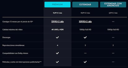 Entre las opciones premium, Netflix se sitúa a la cabeza con un precio de 19,99 euros. HBO y Disney+, en las siguientes posiciones, ofrecen este plan a 15,99 y 13,99 euros, respectivamente. Prime Video no distingue entre planes sin anuncios.