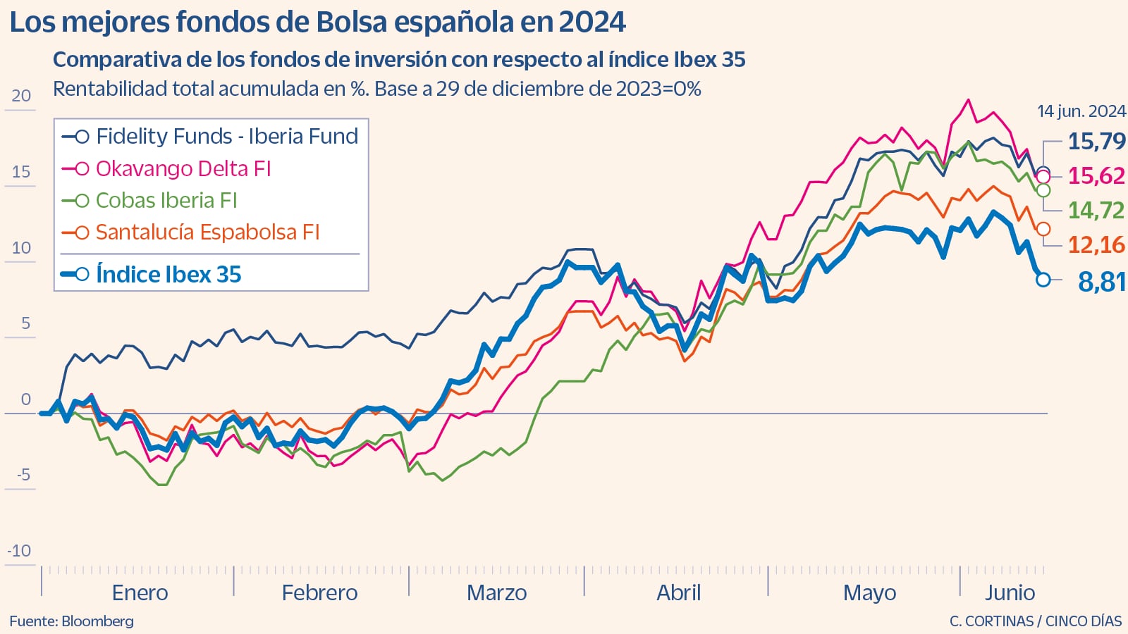 La Bolsa española vuelve por sus fueros. Después de años de letargo, en los que las cotizadas nacionales registraron un comportamiento peor que otros mercados bursátiles, los últimos ejercicios ha conseguido brillar. Y, subidos a esta ola positiva, un puñado de gestores estrella ha conseguido desde 2021 rentabilidades que superan el 10% anual. Y, solamente en lo que va de 2024, alguno de ellos ya acumula un retorno del 17%.