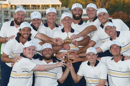 “¡Dos años más!”, exclamó Jon Rahm, sentado en la parte inferior a la derecha de un escenario con dos mesas y 13 sillas. Era la rueda de prensa del equipo ganador de la Ryder, el pasado domingo en Nueva York, y Europa celebraba su histórica victoria frente a Estados Unidos por 13-15. En el centro, con la copa, el capitán Luke Donald era el destinatario de ese mensaje. Dos años más de contrato, pedía Rahm para el inglés, uniéndose así a un sentimiento generalizado, el de los propios 12 jugadores campeones y de los aficionados europeos, que desean que Donald siga al frente en la próxima Ryder, en Irlanda 2027, la cita del centenario. No hay mejor candidato que el hombre que ha conducido a Europa a dos victorias seguidas, en Roma 2023 y ahora en territorio enemigo. Aunque Donald se lo piensa.