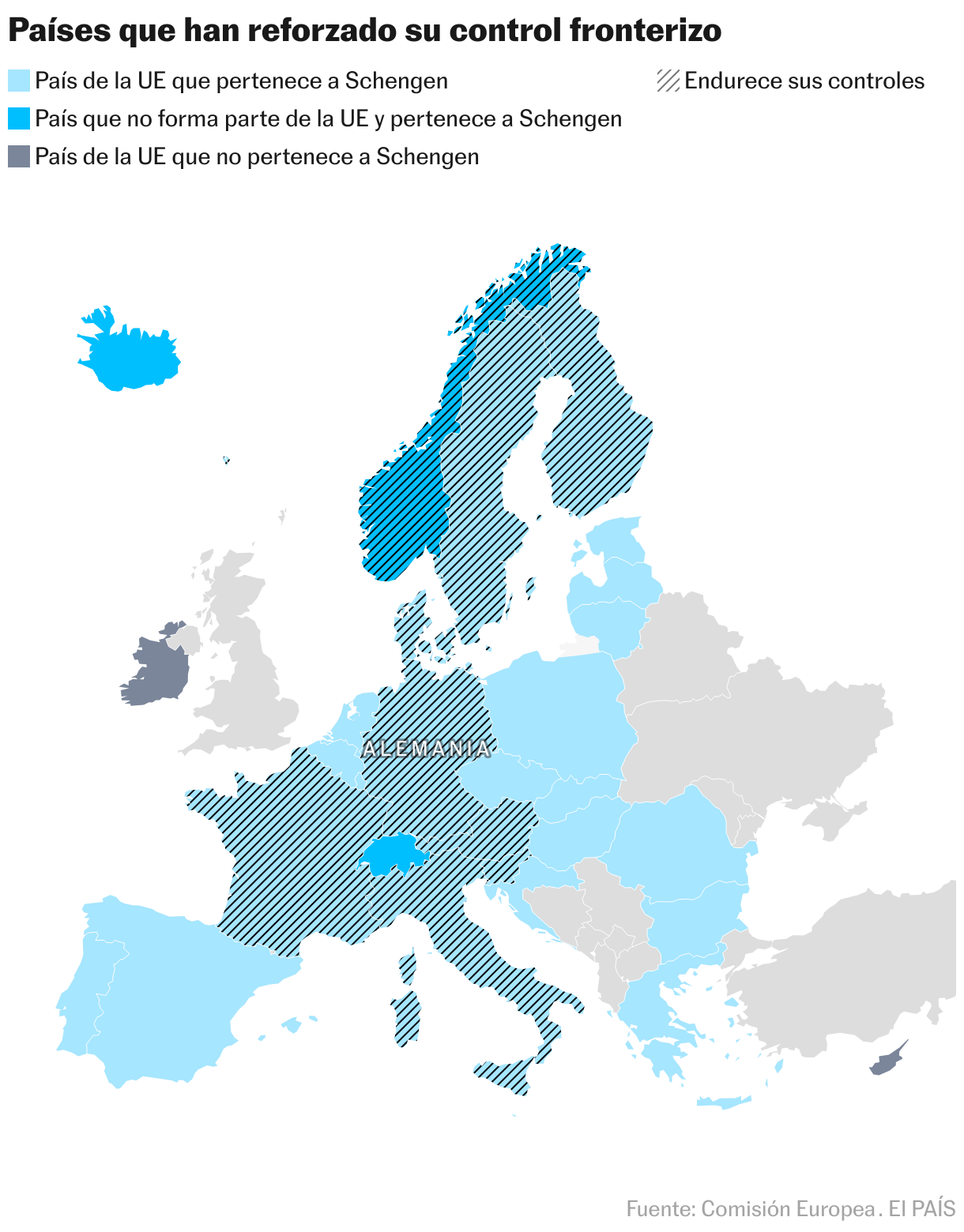 En los últimos años, son varios los Estados que han reinstaurado o reforzado los controles y que han ido extendiendo una medida en principio temporal. Entre las causas aducidas con más frecuencia está la presión migratoria, pero también la amenaza terrorista, que sirve de justificación a países como Francia desde 2015 (ahora con restricciones en vigor hasta el 31 de octubre). Las guerras en Ucrania y en Gaza —riesgos asociados de operaciones rusas, aumento de refugiados o atentados terroristas—, también se encuentran entre los motivos esgrimidos recientemente por algunos Estados.