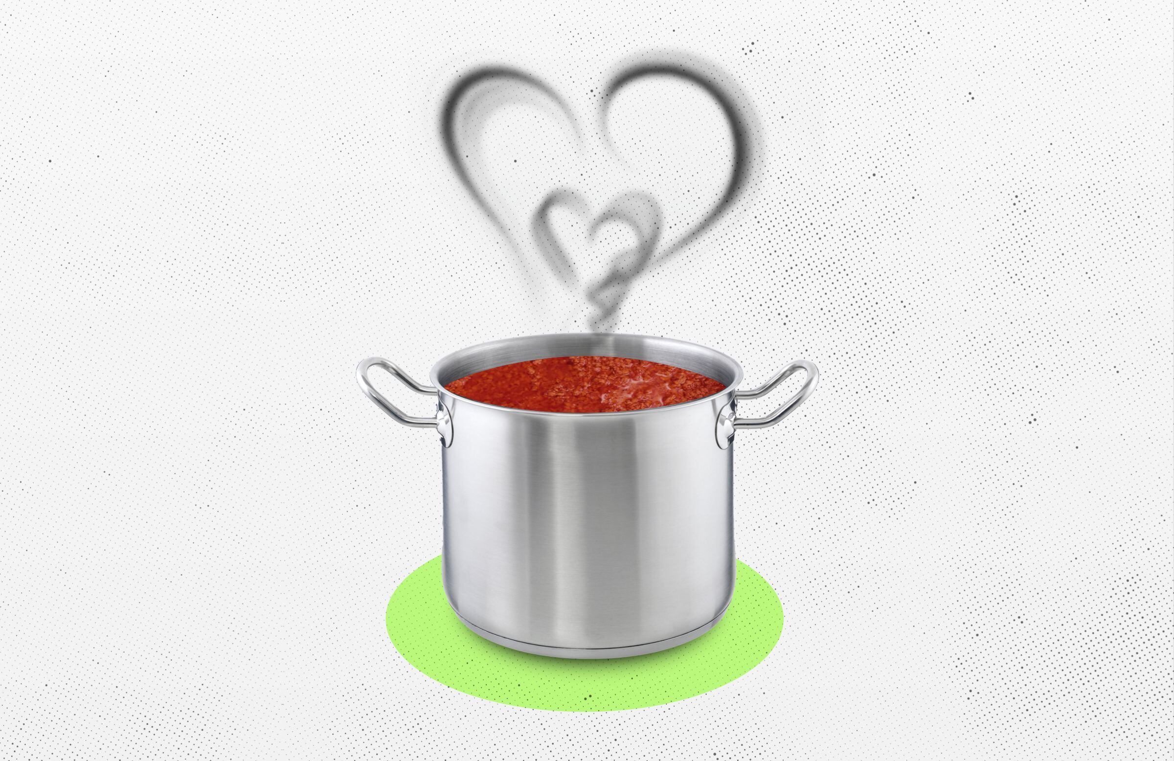 Hay que remover la salsa no continuamente, pero sí a menudo. Y no de cualquier manera. No se puede entrar a la brava con la cuchara gorda a fisgar y rascar en las profundidades cuando el guiso está en plena ebullición. Hurgar sin delicadeza en las entrañas de una boloñesa caliente abre nuevas vías para que el vapor salga a la superficie de formas abruptas y súbitas. Aparecen cráteres volcánicos donde antes no los había y los escupitajos de tomate que dispara la olla, como proyectiles de magma, con una fuerza inexplicable, parecen capaces de llegar al metro y medio de distancia, embadurnar baldosas, aceiteras y campana extractora, y provocar quemaduras de segundo grado a cualquier insensato que ronde las cercanías. Para poder tocar el fondo de la olla hay que apartarla del fuego y dejarla unos momentos tranquila, para que se calme. Hurgar fondo en caliente es una temeridad.
