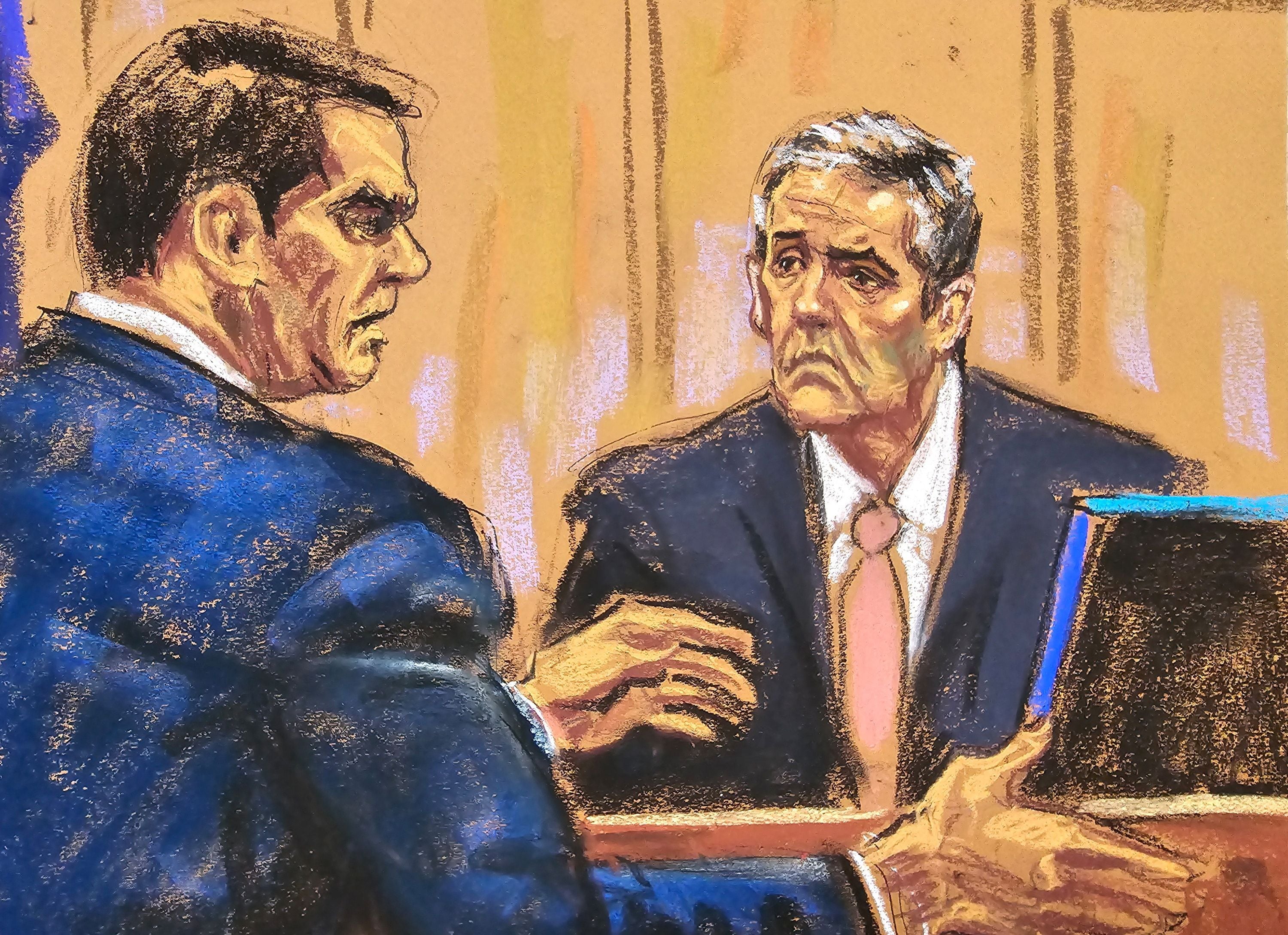 Trump cabeceaba y cerraba los ojos, como si no quisiera ver ni oír, y su antiguo hombre de confianza contestaba sin mover una ceja, ambos a un palmo de una distancia en la que lo más difícil es no cruzar una sola vez la vista. La última parte del interrogatorio de la defensa pasó revista a los contactos de Cohen con el abogado Michael Costello, muy próximo a Trump y que en su día sirvió de canal para contactar a los dos hombres, ya enemistados.