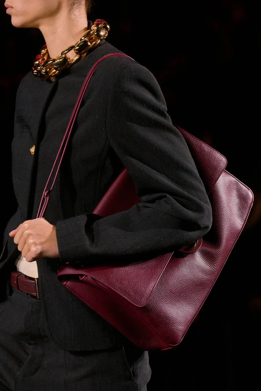 Esta silueta es tendencia por derecho propio esta temporada, en la que el bolso granate se perfila como pieza imprescindible. No solo los vimos en la pasarela de la casa de moda francesa, sino también en Chloé, donde Chemena Kamali relanzó el famoso modelo Paddington adornado con un candado. Victoria Beckham y Alaïa también los incorporaron a sus desfiles.