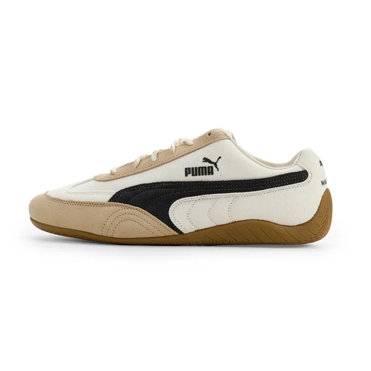 En su segunda colaboración, Puma y Nahmias vienen pisando fuerte. El dúo revisita uno de los modelos más icónicos de la marca de ropa deportiva: las Speedcat, una silueta emblemática inspirada en el mundo del motor. Esta nueva interpretación toma su identidad de la estética californiana que tanto le gusta a Doni Nahmias, oriundo de la costa oeste estadounidense. El resultado son unas zapatillas de ante con un acabado deliberadamente desgastado, que confiere al modelo un aspecto desenfadado realzado por sutiles detalles que hacen alusión a ambas marcas. Para encarnar esta colaboración, Puma recurrió al piloto de carreras Charles Leclerc, embajador de la marca, que lució también un chándal compuesto por chaqueta y pantalón de chándal de estilo automovilístico: un atuendo que complementa a la perfección el universo de esta colección cápsula. Ya disponible en nahmias.com, puma.com y tiendas seleccionadas.