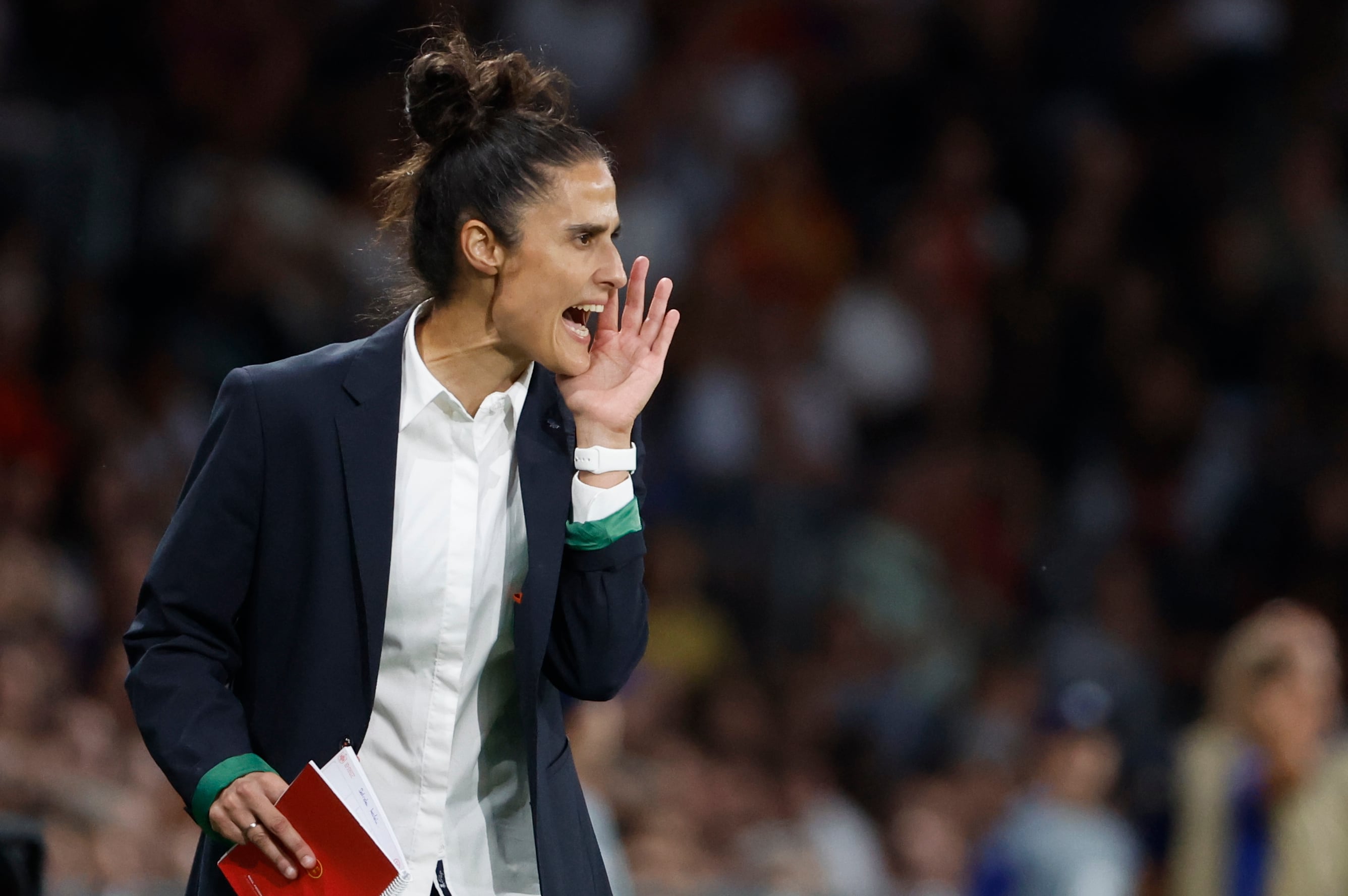 Su andadura en el banquillo de España no comenzó con buen pie. A pesar de que siempre hizo especial hincapié en que era una “persona diferente a Jorge Vilda” y llegó a afirmar que no hablaba con él desde el Mundial de Australia y Nueva Zelanda, su relación profesional con el exseleccionador madrileño la penalizó. Además, su nombramiento fue interpretado como una continuación de lo que había antes y como un intento de la RFEF de lavar su imagen nombrando a la primera mujer seleccionadora en la historia del combinado nacional. Que aplaudiese el discurso de Luis Rubiales, el expresidente de la RFEF, en la denominada asamblea de la vergüenza, tampoco la ayudó.