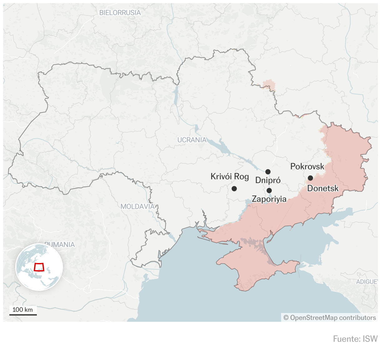El avance ruso en este sector, donde coinciden los límites de las provincias de Dnipró, Donetsk y Zaporiyia, es estratégico para interrumpir las líneas logísticas ucranias que defienden la ciudad de Pokrovsk, asediada por regimientos del invasor desde 2024. Así lo recuerda el último informe sobre la invasión del grupo estadounidense de defensa Instituto para el Estudio de la Guerra (ISW). El ISW asegura que “no se trata de una nueva gran ofensiva operativa rusa para capturar una parte significativa de la provincia de Dnipró”.
