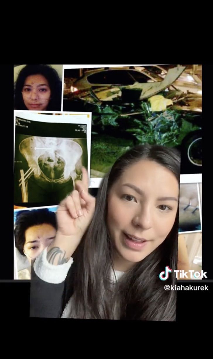 En resumidas cuentas, algo que empezó como un evento normal, terminó en desgracia. Se había roto la pelvis, varias costillas y su pierna había quedado por completo destrozada, por lo que le tuvieron que hacer cirugía reconstructiva, terminando con muchas cicatrices que luego decidió tapar con un tatuaje. Afortunadamente logró recuperarse tras un año de tratamiento, con un andador después de la silla de ruedas, muletas y un bastón.