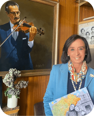 Mayte París actualmente junto al retrato de su padre, que tocaba el violín. Cedida por Foto París