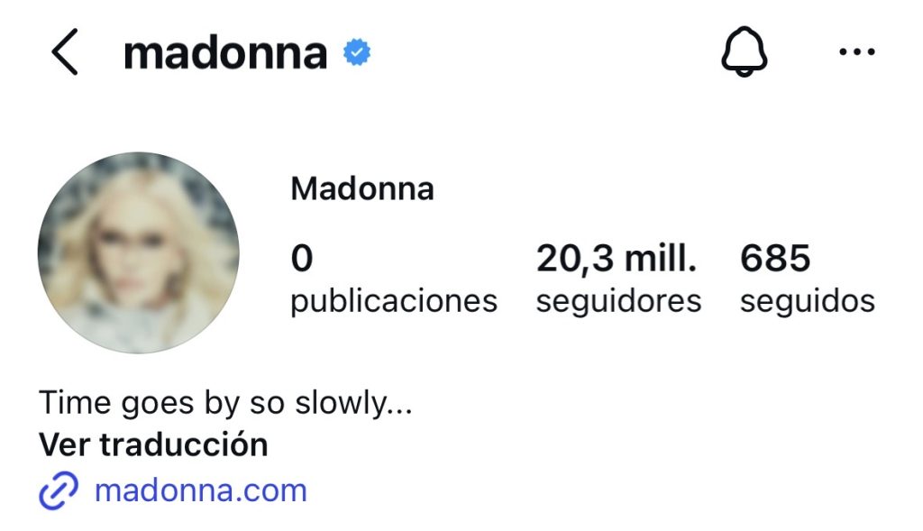 Madonna ha hecho lo que suelen hacer muchos artistas cuando están a punto de anunciar algo importante: borrar todas las publicaciones de su perfil de Instagram. Además, ha subido una nueva foto de perfil que, de momento, solo se puede ver de forma borrosa; parece una imagen de estudio en la que Madonna aparece con el pelo rubio y, por lo poco que se distingue, con un atuendo blanco.