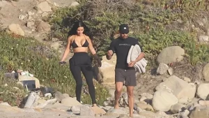 Kim Kardashian y Lewis Hamilton fueron vistos manoseándose en exceso durante cita playera