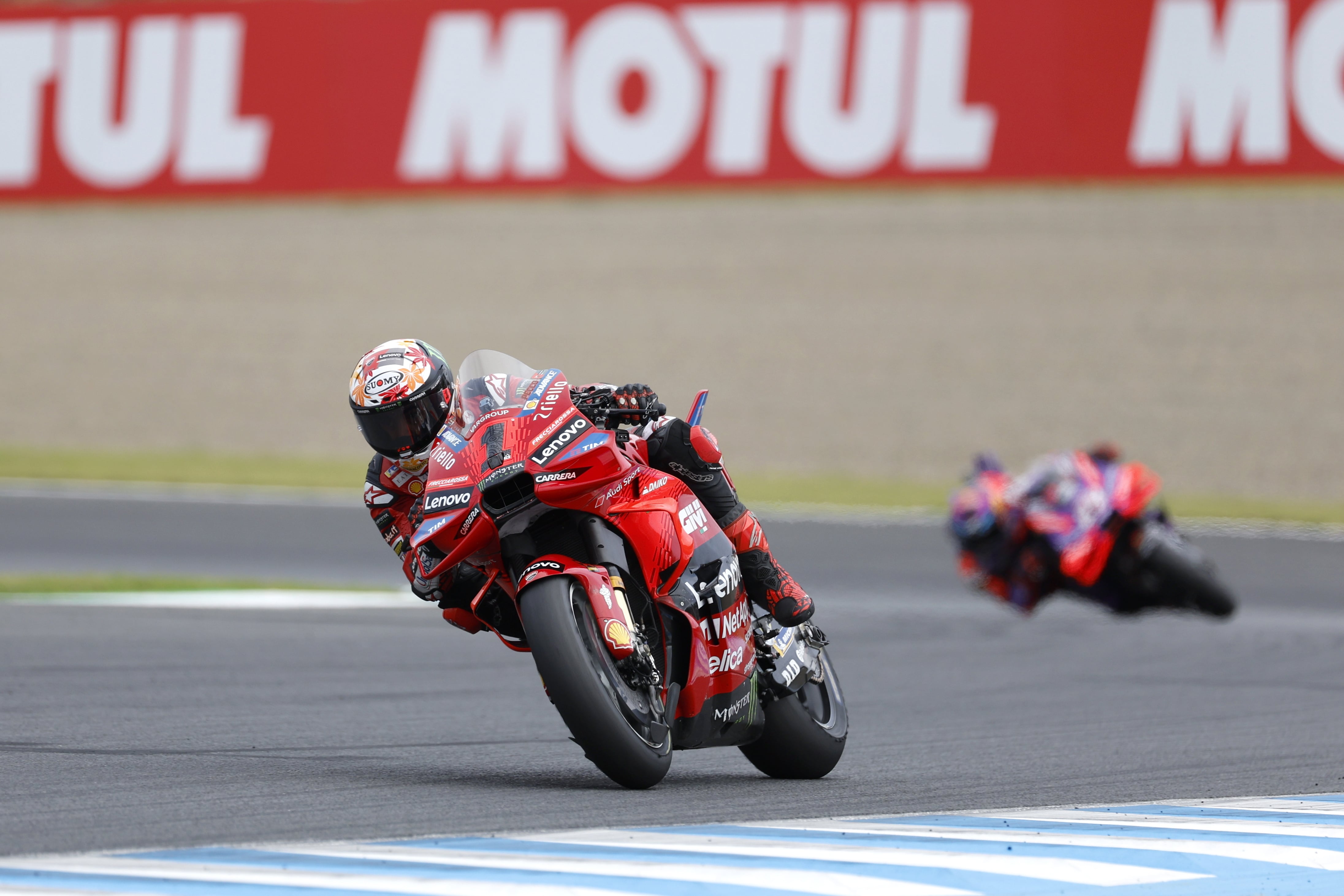 Si puede desplegar su ritmo a placer, sin nadie entorpeciéndole por delante, Pecco Bagnaia es un metrónomo prácticamente infalible. El vigente campeón del mundo, siguiendo su guion más favorable, dominó de cabo a rabo el GP de Japón para atrapar su octava victoria del curso, la mejor cosecha de su vida. Con el pleno de puntos en Motegi, el número uno comprimió una vez más la lucha por el título con Jorge Martín, que salvó la papeleta remontando de la undécima a la segunda plaza después de una mala clasificación el sábado. El español, que entró con un colchón de 21 puntos, mantiene 10 de ventaja al frente de la tabla cuando restan cuatro grandes premios para finalizar el Mundial.