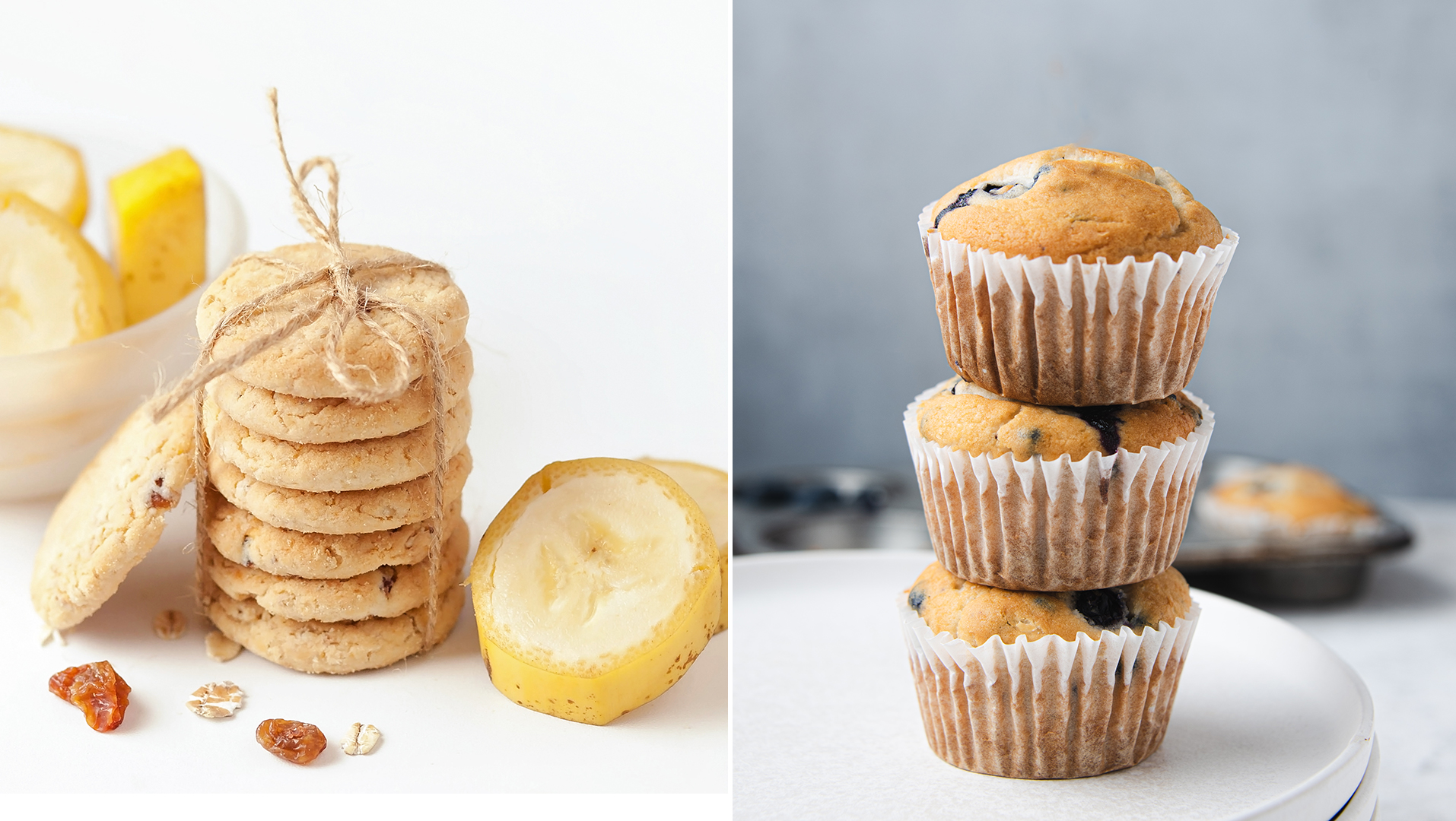- Ingredientes: 1 plátano aplastado; 1 cucharada de crema de cacahuete; 3 cucharadas de avena y la pasta de tres dátiles.