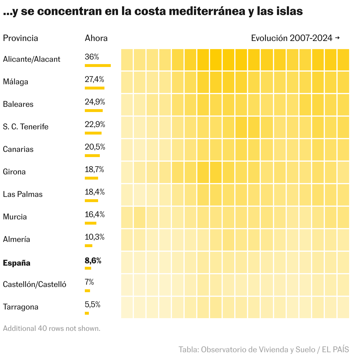 De nuevo, este fenómeno no es igual en todo el territorio. Sus compras se concentran en zonas costeras y en las islas. En algunas regiones como Alicante, Málaga o Baleares superan el 25%.