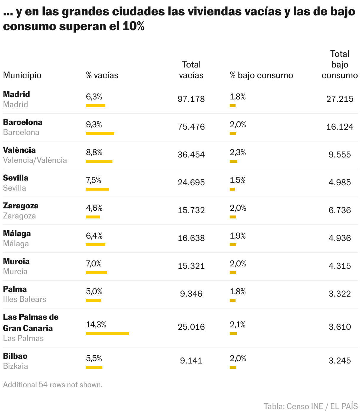 A esas casas hay que sumar las viviendas con bajo consumo eléctrico, una métrica que ayuda a identificar pisos infrautilizados o en alquiler en el mercado de la vivienda turística. Entre Madrid, Barcelona y Valencia suman más de 40.000 viviendas.