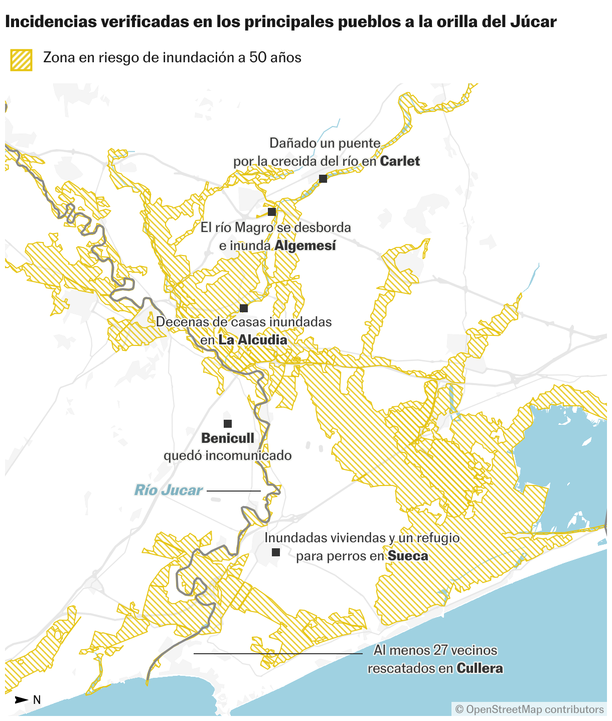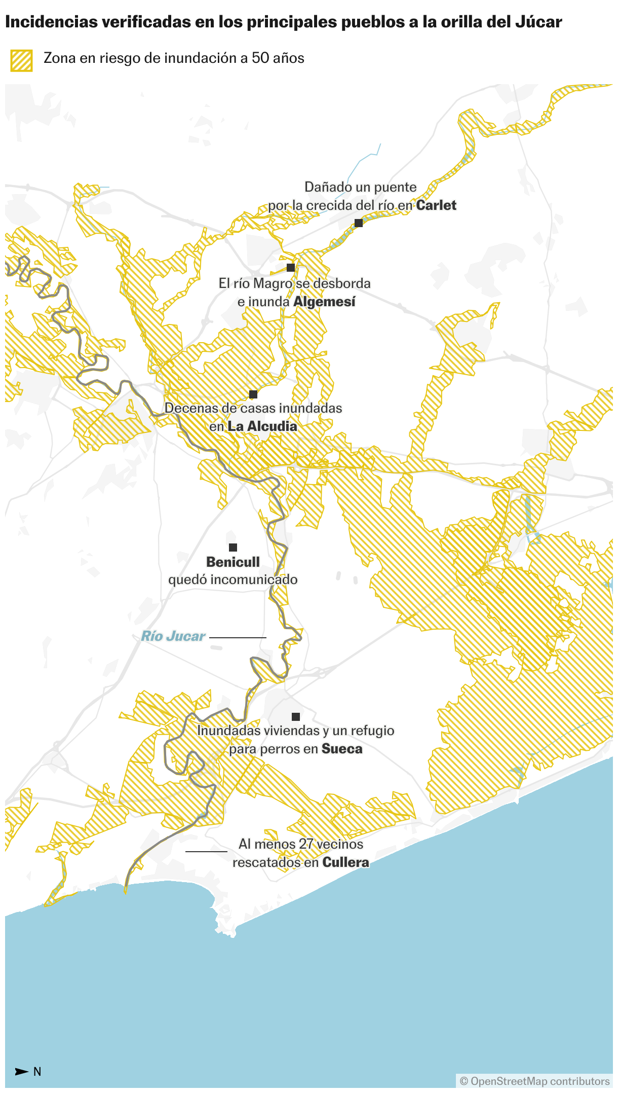 Los pueblos valencianos anegados se cuentan por decenas, afectados por unas lluvias que dejaron más de 400 litros por metro cuadrado en municipios como Buñol, Chera, Cheste, Turís o Chiva a lo largo del martes.