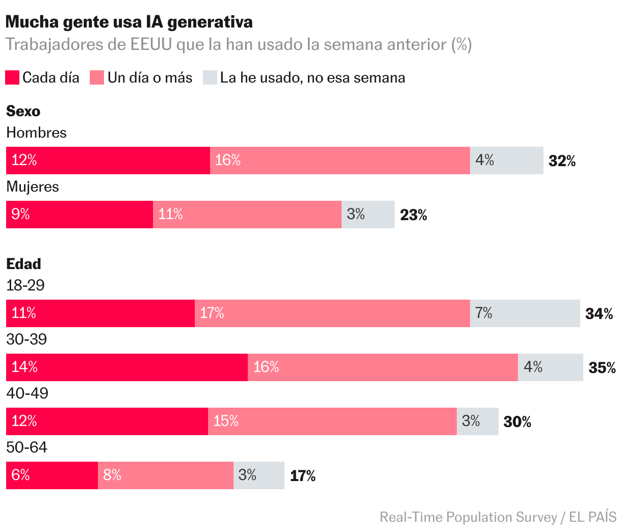 Parece que sí. Según un estudio de agosto, el 24% de los trabajadores estadounidenses habían usado IA generativa la semana que fueron entrevistados. Más aún: una de cada diez la había utilizado a diario.