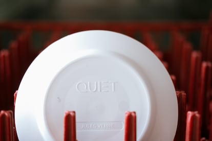 En 2023, un estudio para una empresa de techos acústicos realizada por Institut OpinionWay revelaba que un 75 % de los encuestados buscaba restaurantes tranquilos para disfrutar de la comida y la compañía. Otro tanto aseguraba no volver a un restaurante ruidoso, pero Quiet sabe que su solución aún no seduce a los restaurantes. “Sabemos que a los chefs les gusta elegir sus propios platos. Hemos hecho algunas pruebas y de momento la restauración comercial no muestra mucho interés en nosotros, salvo algunas cadenas hoteleras”, dice Moritel. La ambición de mejorar el diseño está sobre la mesa, junto a una larga lista de tareas pendientes: sueñan con llegar a otros países y ofrecer la vajilla a particulares, interesante para personas con movilidad reducida o autismo. “Ahora tenemos desafíos más urgentes, como la introducción de platos hondos, el reciclaje y, sobre todo, el aumento de nuestro ritmo de producción. Quizás entonces seamos capaces de responder a la demanda de particulares, donde esperamos tener nuestro hueco”, confía Moritel, consciente de que, para hacer crecer este proyecto, necesitan más inversión. El silencio también necesita dinero para hacerse oír.