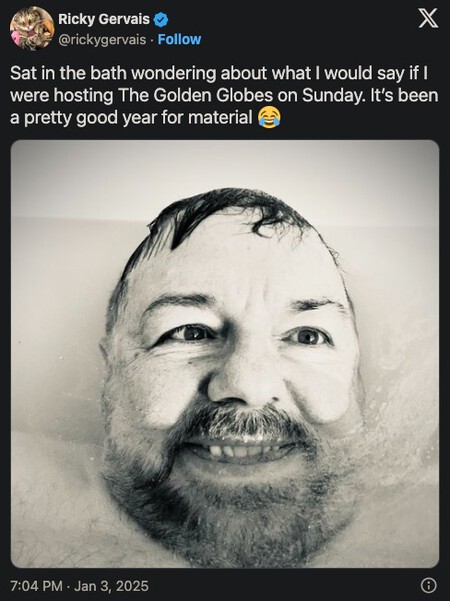 Ricky Gervais comparte los chistes que hubiese hecho si presentase los Globos de Oro este año. Son tan salvajes como cabría esperar