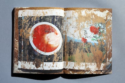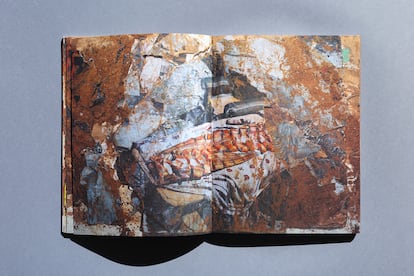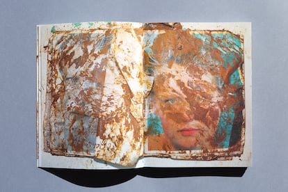 Durante los días que siguieron a los dramáticos sucesos, Cases fue encontrando algunos ejemplares de los fotolibros que había ido atesorando con los años. Desperdigados en un radio de unos 300 metros, permanecían, empapados y cubiertos de tierra húmeda, unos pocos volúmenes que habían alimentado el ansia creativa y estimulado la trayectoria artística del autor. Los llevó a su jardín. De forma instintiva, decidió reproducirlos. Volverlos a ver por última vez antes de que sus páginas quedaran pegadas para siempre. En un banco, fue fotografiando sus hojas. De ahí, surgió Catálogo, una publicación que transforma la tragedia en un poderoso y poético ensayo visual sobre la creación, la memoria y la pérdida: una reflexión que convierte el barro, la destrucción y el caos en una metáfora de resiliencia. Más que un catálogo, se erige como un autorretrato en el que la naturaleza se encarga de reescribir la historia.