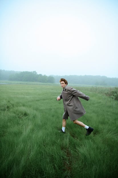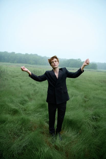 Un par de años después, Pattinson empezó a salir con la cantante FKA Twigs. Llegaron a comprometerse, pero rompieron, y en 2018 comenzó su relación actual, con la actriz Suki Waterhouse. Como su personaje en la película, el actor ha sido padre recientemente: su primera hija nació en 2024. “No creo que hubiera interpretado este papel de la misma forma hace tres años. Es extraño, porque nunca fui muy fan de los niños”, dice riendo. “Pero ahora disfruto de verdad con ellos. Eso me sorprende. En el rodaje pasamos muchísimo tiempo con los dos gemelos adorables que interpretaban al bebé. Fue divertido. También es curioso cómo empiezas a tener conversaciones sobre cosas como colegios o guarderías. Es extraño. Siento como si hubiera una especie de fuerza gravitatoria que te lleva a usar plumíferos Patagonia y pantalones de bolsillos”, bromea sobre el modo en que ha abrazado el estilo padre. Pattinson, que lleva años vinculado a Dior —firma de la que viste en este reportaje— conoce bien el mundo de la moda: “Nadie trabaja más que los diseñadores. Es una locura. Tienes que ser Superman para funcionar a ese nivel”, dice.