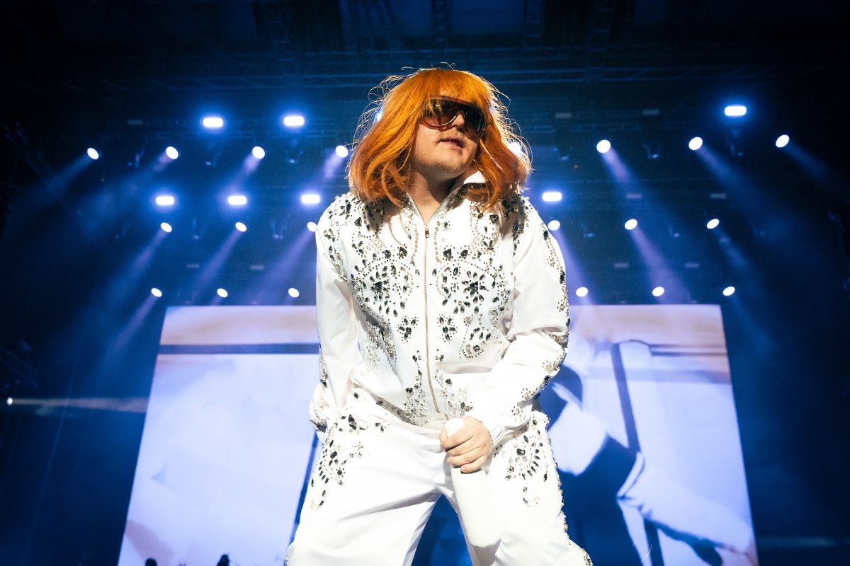 Ruslán Mediavilla ha preparado a conciencia este concierto, de composición quizá inspirada en Kanye West. Hay proyecciones ocurrentes, 100% generación Z; una docena de músicos y coristas se sitúa en un alto al fondo del escenario, todos vestidos de blanco y con gafas de sol cual maniquíes; el mismo ejercicio de peluquería y vestuario de ruso es un meme en sí mismo. Una mezcla entre un pijama lleno de brilli-brilli y unas pantuflas que hubieran hecho las delicias de Carmina Barrios o Carmen Sevilla, y luego un traje de lentejuelas que ni Raffaella Carrá. De esta guisa, ese momento en que sube unos peldaños y los salta, cual estrella de música jevi, hasta en 4 ocasiones consecutivas, es delirante y entrañable a partes iguales.