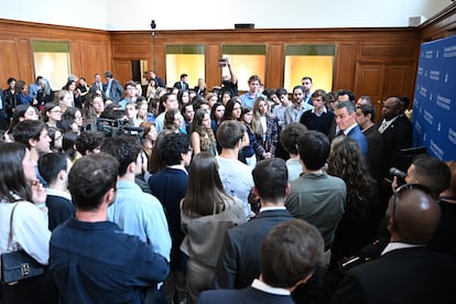 El profesor de Columbia Adam Tooze organizó el acto y fue el responsable de hacerle las preguntas. No se permitió que los alumnos interpelaran al presidente en público, aunque luego él se reunió con algunos de forma privada, unos 70 españoles que estudian en esta universidad de élite.