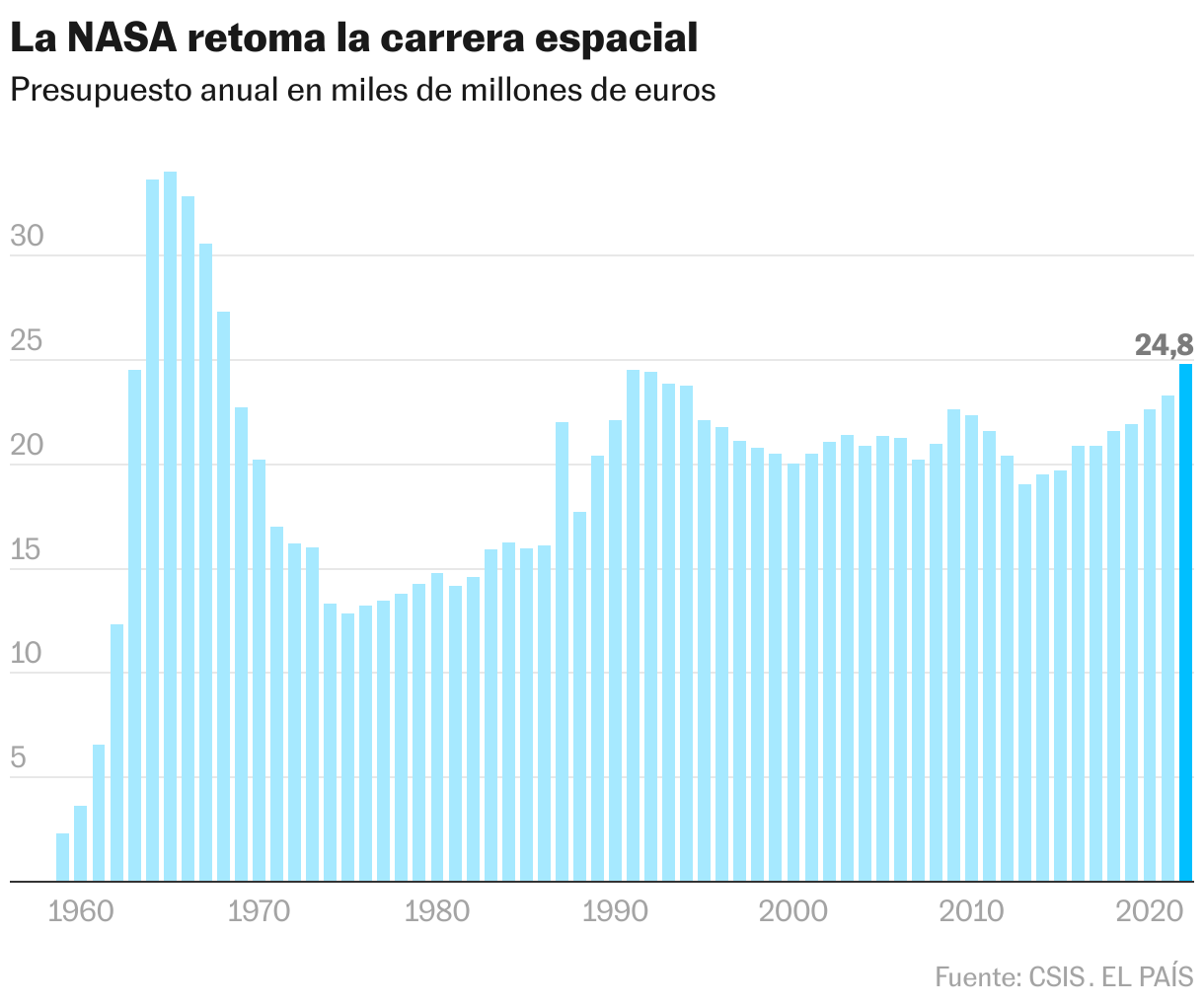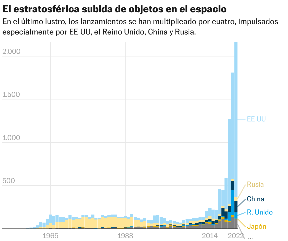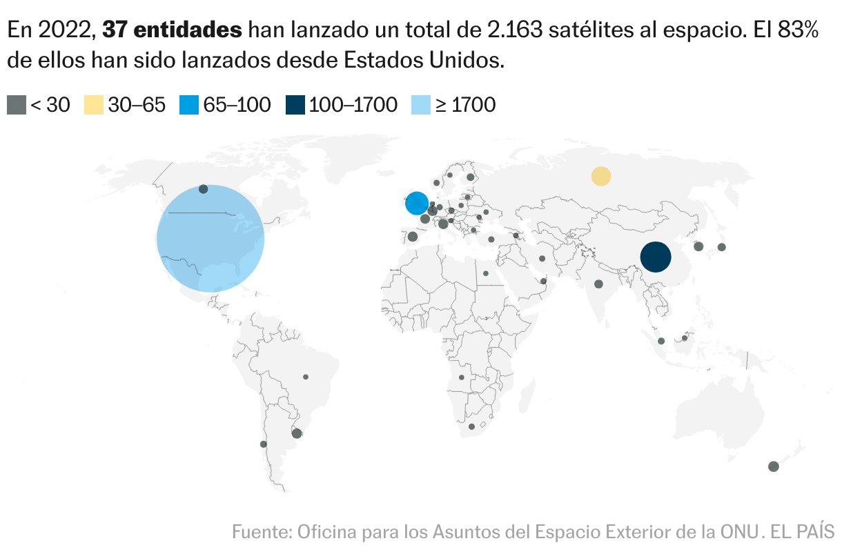 Además, la industria militar es Saturno devorando datos. La firma Spire Global, que controla más de 100 constelaciones, sobre todo nanosatélites, que vigilan el planeta casi en tiempo real diseñados para desintegrarse naturalmente, “ha visto un fuerte aumento” —avanza Joel Spark, jefe de arquitectura satelital— “de compras de datos de satélites comerciales por parte de los Gobiernos para aplicaciones de defensa”. La recién creada Fuerza Espacial estadounidense tiene un presupuesto de 24.000 millones de dólares frente a los 5.000 millones de 2019, cuando la inauguró Trump. “Existe una tendencia hacia la militarización del espacio, que evidencia su relevancia estratégica”, avisa Stephan Klecha, socio fundador del banco de inversión Klecha & Co. En una reunión con periodistas en mayo en la Embajada estadounidense de Londres, la Administración Biden lo dejó muy claro en The Guardian: “Estados Unidos está listo para luchar esta noche en el espacio si es necesario”. Para Rod Drury, vicepresidente internacional de Lockheed Martin Space, “la mayor arma en la guerra del futuro será la información, y los satélites desempeñan un papel esencial. La rapidez con la que se adquiera, difunda y analice la información, y la velocidad con la que se puedan tomar decisiones importantes a partir de ella serán fundamentales para ganar batallas. El Espacio siempre ha sido el punto esencial para recopilar y difundir información a escala planetaria, incluso en las zonas más remotas y conflictivas”.