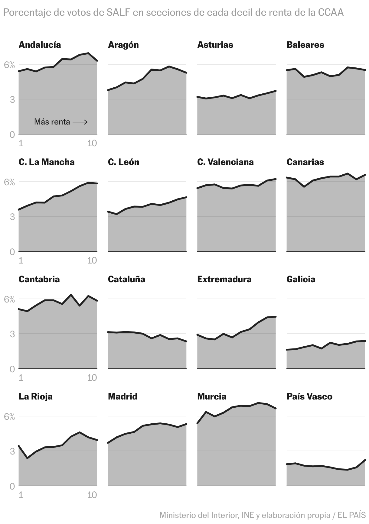 Alvise tuvo apoyos parecidos en barrios de todas las rentas, aunque en algunas comunidades sí se destacó en las secciones censales con rentas crecientes.