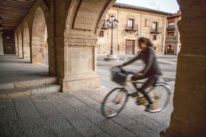 La vieja estación de Ezcaray, que ahora es un bar-restaurante con fotos del ferrocarril y terraza en el viejo andén, es un buen lugar para desayunar antes de emprender la marcha. Y los primeros kilómetros de la vía, hasta Ojacastro, son los más bellos, sobre todo en otoño, cuando los rebollares y las choperas se pintan de ocre y amarillo. El momento más interesante, sin embargo, es cuando la vía verde se cruza con el Camino de Santiago en Santo Domingo de la Calzada. Aquí hay que apearse de la bici para subir al campanario de la catedral, que es la torre más alta de La Rioja, con 70 metros. Y también en Casalarreina, para visitar el monasterio de Nuestra Señora de la Piedad, una joya del gótico isabelino. La antigua vía de El Bobadilla se pierde en Casalarreina, pero se continúa pedaleando por una ruta verde que lleva por Cihuri y Anguciana hasta Haro, la capital del vino riojano.