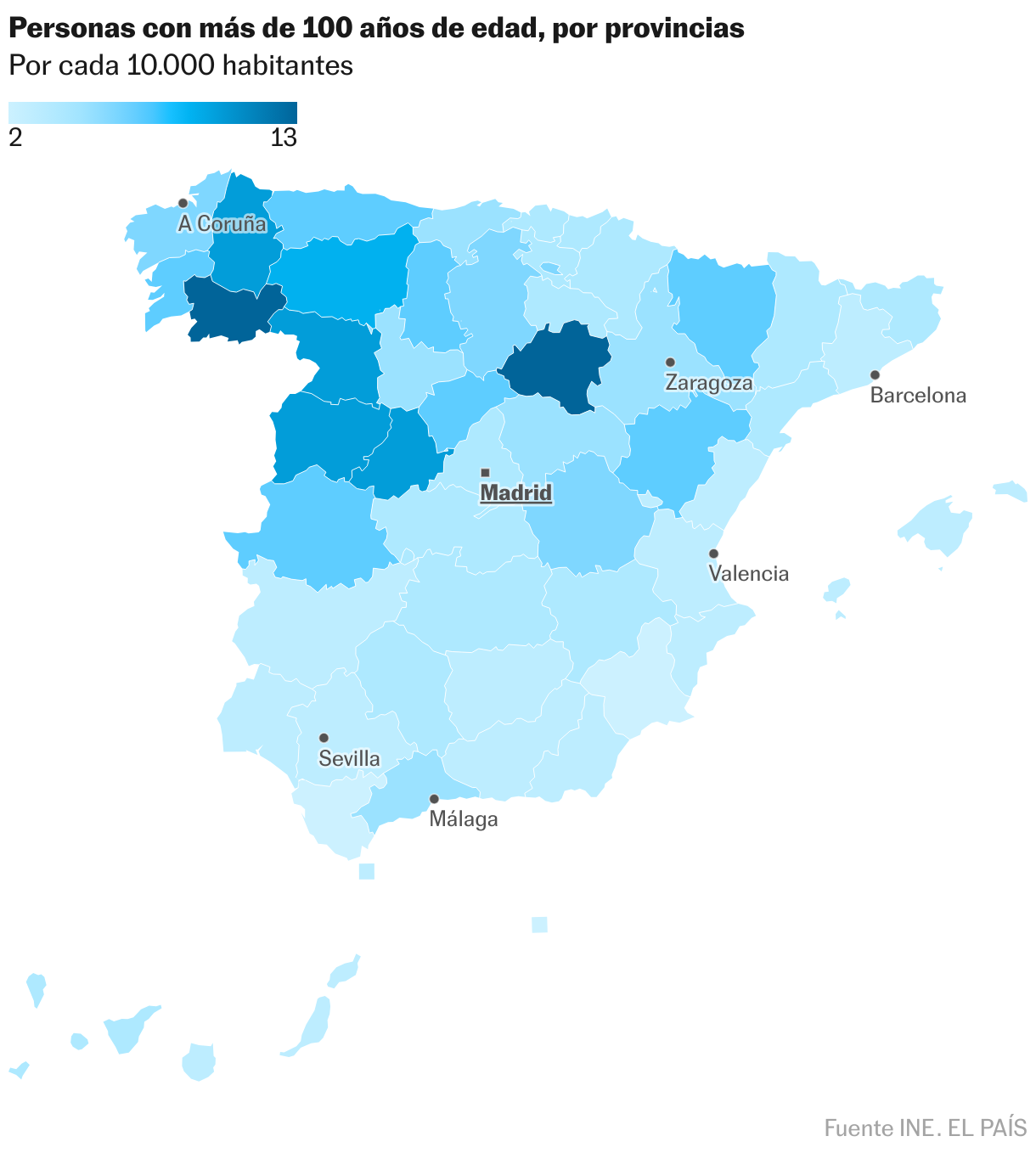 Una muestra tan amplia podría servir, por ejemplo, para conocer el porqué en unas zonas hay muchos más centenarios que en otras. Aunque es una población que no para de crecer (es el sector demográfico que más lo hace en términos relativos), fruto de los avances médicos, las vacunas y la calidad de vida, no lo hace de la misma forma en todos sitios. Entre Lugo y Ourense hay pueblos con 50 centenarios por 10.000 habitantes. En esta última provincia la media es de 13, lo que multiplica por tres o por cuatro a la mayoría.