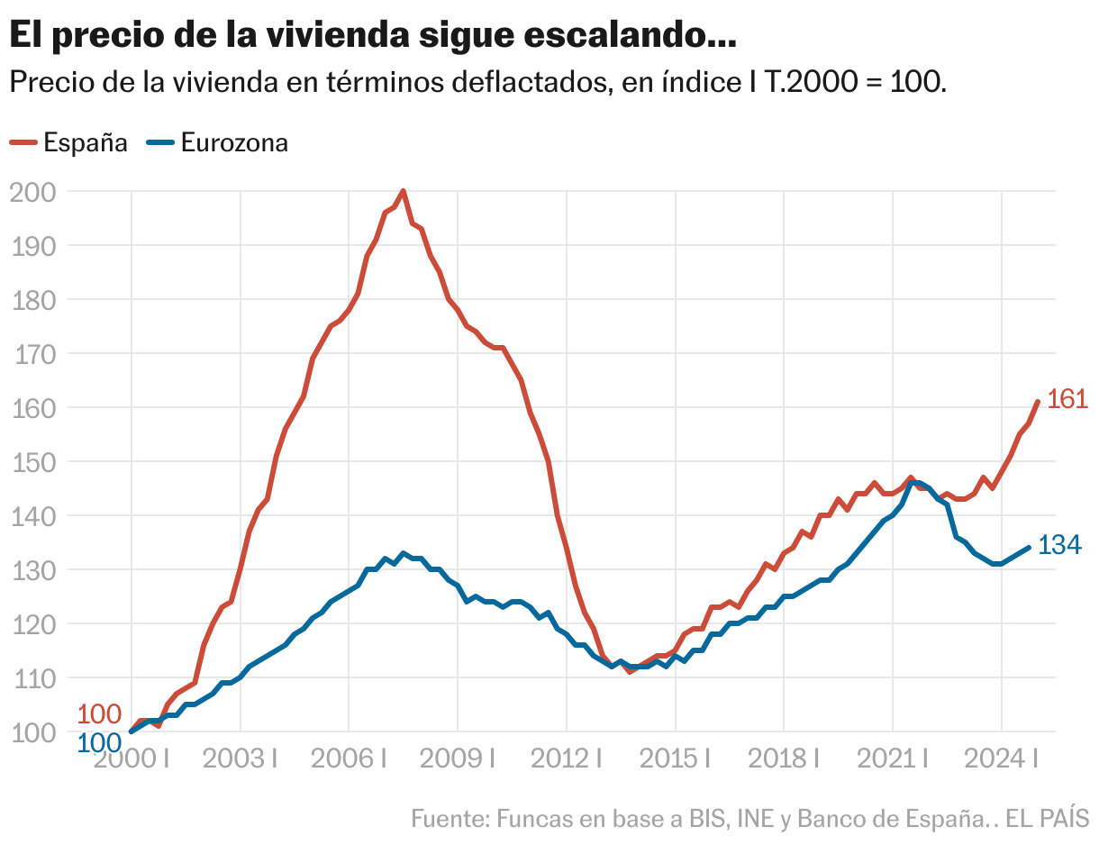 Conviene, sin embargo, anticipar la inflexión. Pensemos en las pérdidas potenciales de ingresos para los municipios. La situación de sobrevaloración también avala la recomendación de Bruselas de acelerar la construcción de vivienda asequible, menos vulnerable a los vaivenes del mercado libre. Por otra parte, la financiación de las nuevas promociones de vivienda libre debe basarse en parámetros realistas y no en los precios observados. Y naturalmente los incentivos a la demanda como los avales o la reducción de tasas no harán más que agravar el desequilibrio. Es posible que los precios sigan repuntando en el corto plazo, pero la burbuja se hará cada vez más evidente.