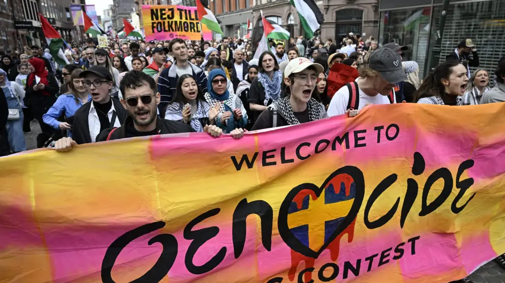 Mientras todo esto ocurría en el seno del Malmö Arena, en las calles del centro de la ciudad se celebraba una nueva manifestación en contra de la participación de Israel en Eurovisión, como había ocurrido el jueves, horas antes de que Eden Goldan actuara en la semifinal con su tema Hurricane y se convirtiera en una de las favoritas a ganar el certamen gracias al apoyo del televoto.