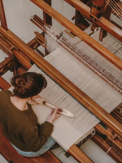“Se puede controlar el tipo de turismo que tenemos desarrollando productos y servicios que pongan en valor lo que nos enorgullece, hacer las cosas más conscientes, lentas, enraizadas”, enfatiza, “un turismo más responsable, de una relación con la naturaleza más sosegada, y con este proyecto queremos extender esa idea”. Allí no hay un hotel, pero sí tienen talleres de cerámica, rutas por la zona, explican los procesos de creación de sus alimentos o muestran cómo funcionan esos telares en los que trabajan la lana. “Acabamos de consolidar nuestra primera colección de alfombras, llevamos unos meses haciendo mantas… Tenemos casi 300 ovejas y este año estamos recibiendo la lana de la esquila de casi 3.000 de Mallorca, porque antes se tiraba, no tenía valor, pero queremos reactivar el sector, que fue boyante aquí”, añade. Sus telares proceden de antiguas fábricas locales y en su restauración participó Daniel Harris, “que es como un gurú de los telares antiguos, tiene una empresa que se llama London Cloth y telares de 100 y 200 años”.