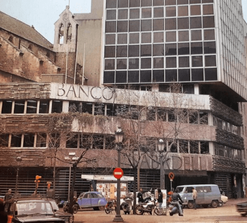 Banco Sabadell abrió su primera sucursal en Barcelona en 1970, en la Rambla de Catalunya esquina con Roselló, hoy oficina 200 y sede de la Fundación Banco Sabadell. Archivo Histórico Banco Sabadell (AHBS)