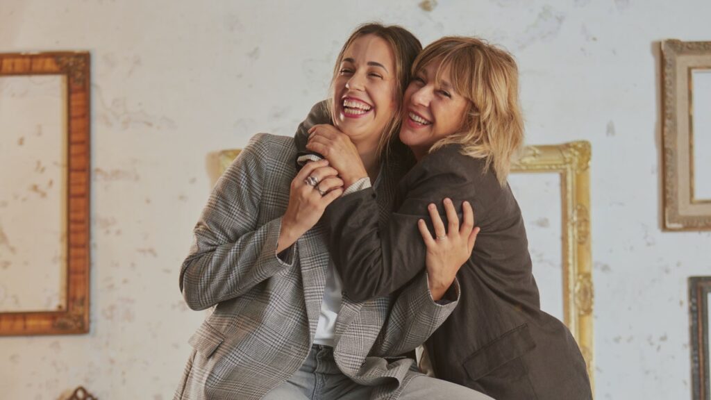 Las hermanas Teresa y Carmen de Aspe, en su pastelería de Salas. Cedida por Los Carajitos del Profesor
