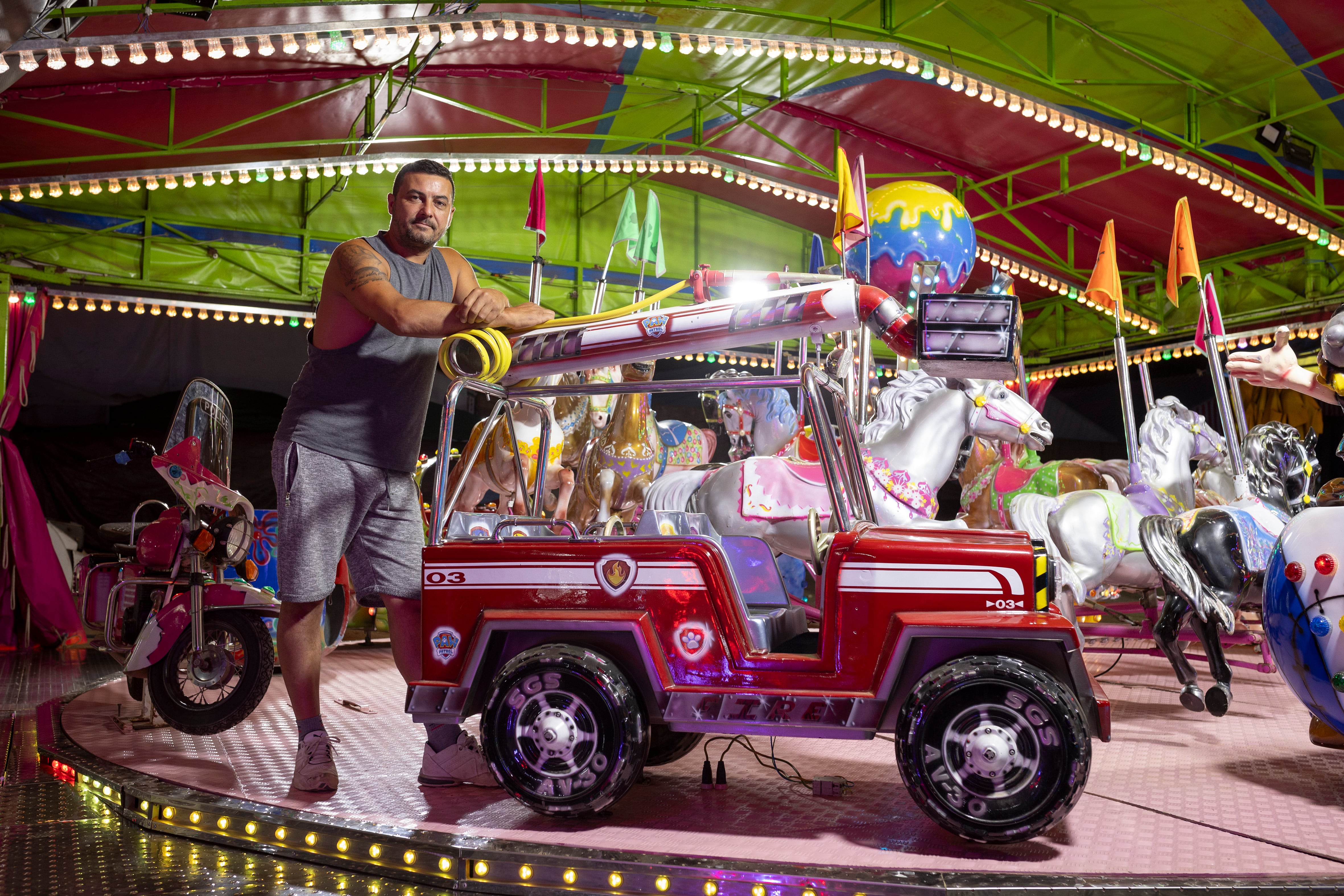 El trabajo de un feriante no se mide en días ni en horas. “Nosotros somos autónomos 24 horas al día, siete días a la semana, especialmente en verano”, comenta José María Ordóñez, natural de Ubrique (Cádiz) y dueño del Baby Infantil, un tiovivo con el que recorre la provincia gaditana y parte de Andalucía junto a su mujer y su hijo de 13 años. Ordóñez espera que el niño siga otro camino diferente al que comenzaron sus abuelos con un puesto de turrón: “Él quiere estudiar veterinaria y me gustaría que lo hiciera, es un fenómeno. Esta vida es muy sacrificada y no tiene la misma rutina que un trabajo convencional. No hay horarios fijos ni días libres”, expresa.
