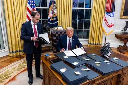 Fue una de las primeras medidas adoptadas por Donald Trump tras tomar por segunda vez posesión del Despacho Oval horas después de jurar el cargo en Washington. El nuevo presidente de Estados Unidos firmó este lunes una orden ejecutiva por la que indulta a unos 1.500 condenados o procesados por participar en el asalto al Capitolio del 6 de enero de 2021. También conmutó las penas de 14 reos que estaban en prisión por los delitos más graves cometidos aquel día, una de las jornadas más negras de la historia reciente de la democracia en Estados Unidos. El efecto de la conmutación de pena es similar en este caso al del indulto: todos quedarán libres.