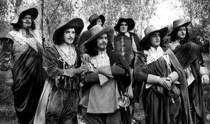 Los demás pasajeros del AVE miraban con indisimulada curiosidad la gran bolsa de plástico roja que yo cargaba en el tren camino de Madrid. Sobresalían las cazoletas y parte de las hojas de dos espadas de juguete relativamente resultonas. En la bolsa llevaba con ellas un bonito disfraz de mosquetero del rey, del rey francés se entiende, concretamente de Luis XIII, que los creó como compañía de guardia real en 1622. En mi fondo de armario, en el que mira que hay cosas, no figura ropa de mosquetero, así que tuve que alquilarla. Lo hice en Menkes, la tienda barcelonesa de referencia a la hora de disfrazarse. La verdad, no estaba seguro de ir a encontrar algo satisfactorio: a la que te descuidas, ir de mosquetero queda cutre y pareces D’Artacán. Pero una dependienta muy atenta que me franqueó el paso a la zona reservada de alquileres pese a que no había pedido cita previa me puso ante los ojos un traje maravilloso. La casaca era perfecta: en forma de manto a cuatro lados, de lana azul (el color de la librea real) y con la emblemática cruz flordelisada de terciopelo blanco y llamas rojas. Me llevé la casaca y la gola de tela, pero descarté el resto del disfraz, camisa, pantalones y botas (al cabo los mosqueteros vestían al principio ropa civil debajo).