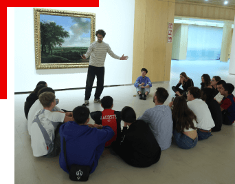 Luego, cada grupo, se planta ante la obra elegida y cuenta al resto. Y aquí surgen historias de toda clase: algunos construyen con gracia el argumento más inverosímil de un filme de catástrofes propio de Hollywood, otros se cuestionan, dejando atónitos a los oyentes: “En un bodegón, ¿por qué son solo comida los cervatillos o las gallinas y no los perros o los gatos?”. Efectivamente, se trata de una característica de índole cultural. El arte habla de nosotros, y se puede dialogar con él.