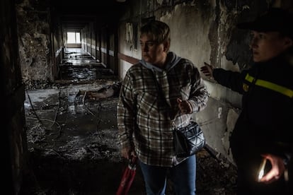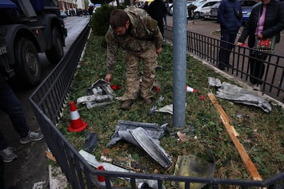 “Ha sido aterrador. Vivimos por aquí cerca y escuchamos la explosión en torno a las cuatro de la mañana”, explicaba Irina, de 56 años, que observaba junto a su marido el trabajo de los investigadores. Un hombre vestido de militar se afanaba en recoger restos de lo que, otro con uniforme negro, confirmaba que se trataba del misil que ha impactado.