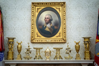 El equipo de doradores del presidente ha estado muy ocupado desde entonces. En la reunión que volvió a mantener este verano con su homólogo ucraniano, las guirnaldas de la chimenea se habían extendido a las paredes, mientras que molduras que antes eran blancas se habían vuelto doradas. Lo mismo ha empezado a ocurrir en otros espacios como la Sala del Gabinete, reformada al igual que el despacho en lo que Trump considera un símbolo de esa “Edad Dorada” que prometió en el discurso inaugural de su presidencia. “Se ha convertido en un lugar realmente bonito”, comentó de esta última salsa durante una reunión con sus secretarios.