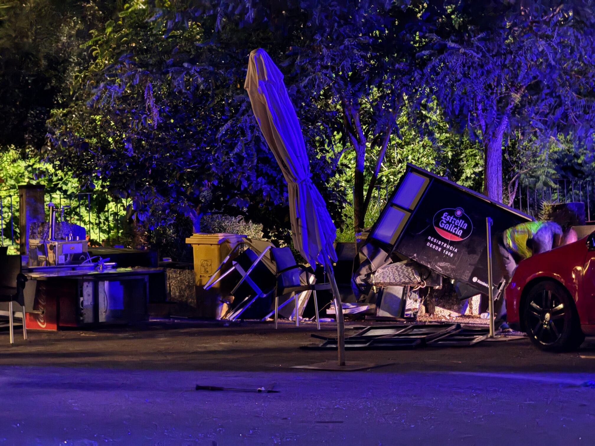 Enseguida empezaron a volar sillas y mesas dentro del local y se desató el caos. Así fue cómo se armó una pelea en la que al menos, según los testimonios y las imágenes captadas en ese momento, estaban presentes, agrediendo, defendiéndose o tratando de escapar, medio centenar de personas. La trifulca se fue moviendo hacia el exterior del Centro Recreativo y siguió ganando intensidad. Hasta que una furgoneta blanca que trataba de salir del lugar arrolló por completo a uno de los asistentes antes de escapar causando daños en otros vehículos. El fallecido es Juan Manuel Ventos Montoya, de 36 años. La policía todavía no ha esclarecido si se trató de un atropello accidental.