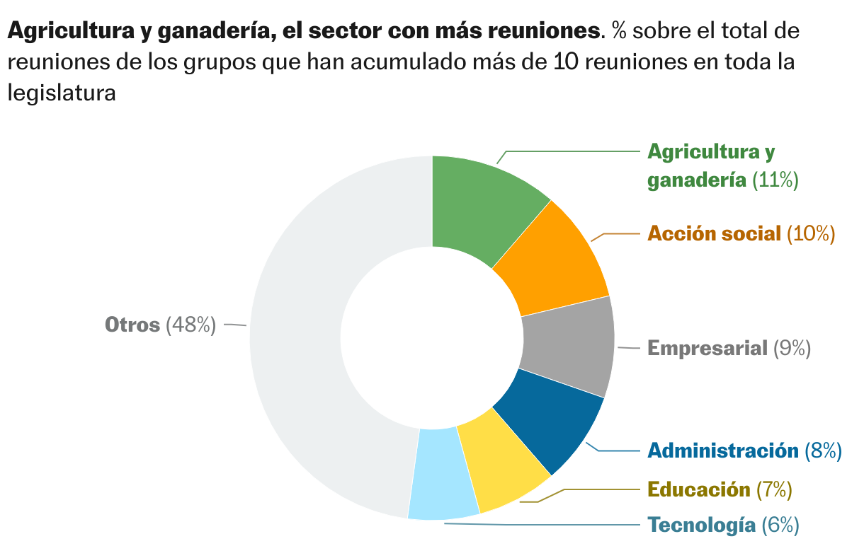 Datos recogidos en el Registro de Grupos de Interés de la Generalitat. Se han analizado las reuniones producidas durante la XIII legislatura del Parlament, de marzo de 2021 hasta mayo de 2024.