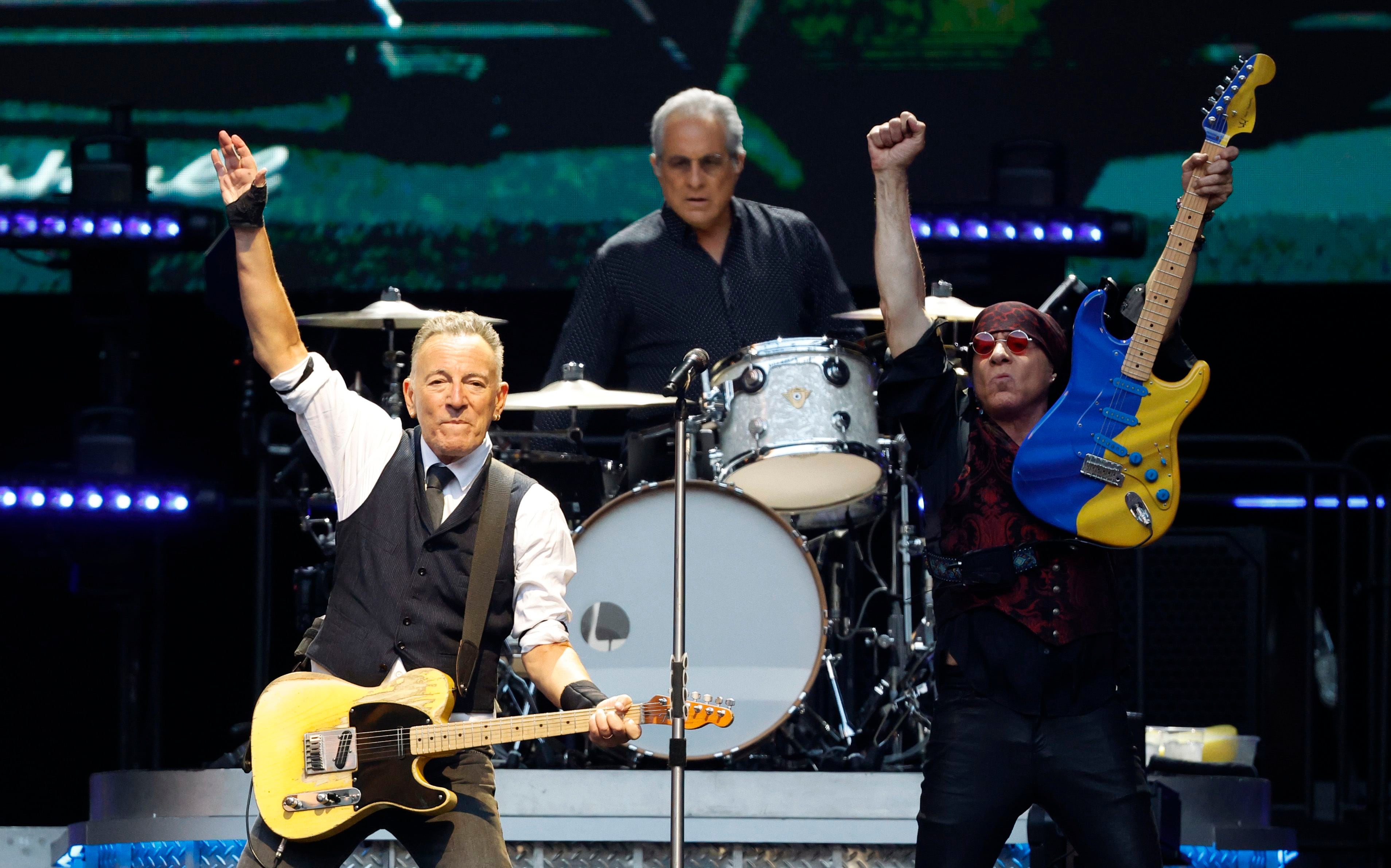 Los pasados miércoles y viernes y mañana en el Metropolitano. Los próximos jueves y sábado en el Estadi Olímpic. Desde el arranque en Florida en febrero de 2023 y hasta que su cuerpo aguante tres horas más de concierto por las capitales de Europa y de su país. En el corazón de esta gira de Bruce Springsteen, condicionada por la enfermedad y los achaques de la edad, un mandamiento: este hombre de 74 años canta como un predicador porque, cuando se es adulto, la muerte debe ser contemplada con reverencia para poder celebrar cada instante de la vida. Sus conciertos son esa entusiasmada liturgia y en el eje del repertorio que interpreta cada noche, proclama su testamento: Last Man Standing, el último que sigue en pie. Es él. Cuando la interpreta, la banda deja el escenario por unos instantes; antes de entonarla, recita un breve monólogo en el que cuenta la despedida que motivó su composición (lo lee en la televisión que tiene bajo sus pies y que le sirve por si se olvidase de las letras), en las pantallas se sobreimprime la letra traducida de su discurso y de la canción. Estás rodeado de miles de personas, pero todo está pensado para concentrar la atención en la verdad vital que quiere transmitir.