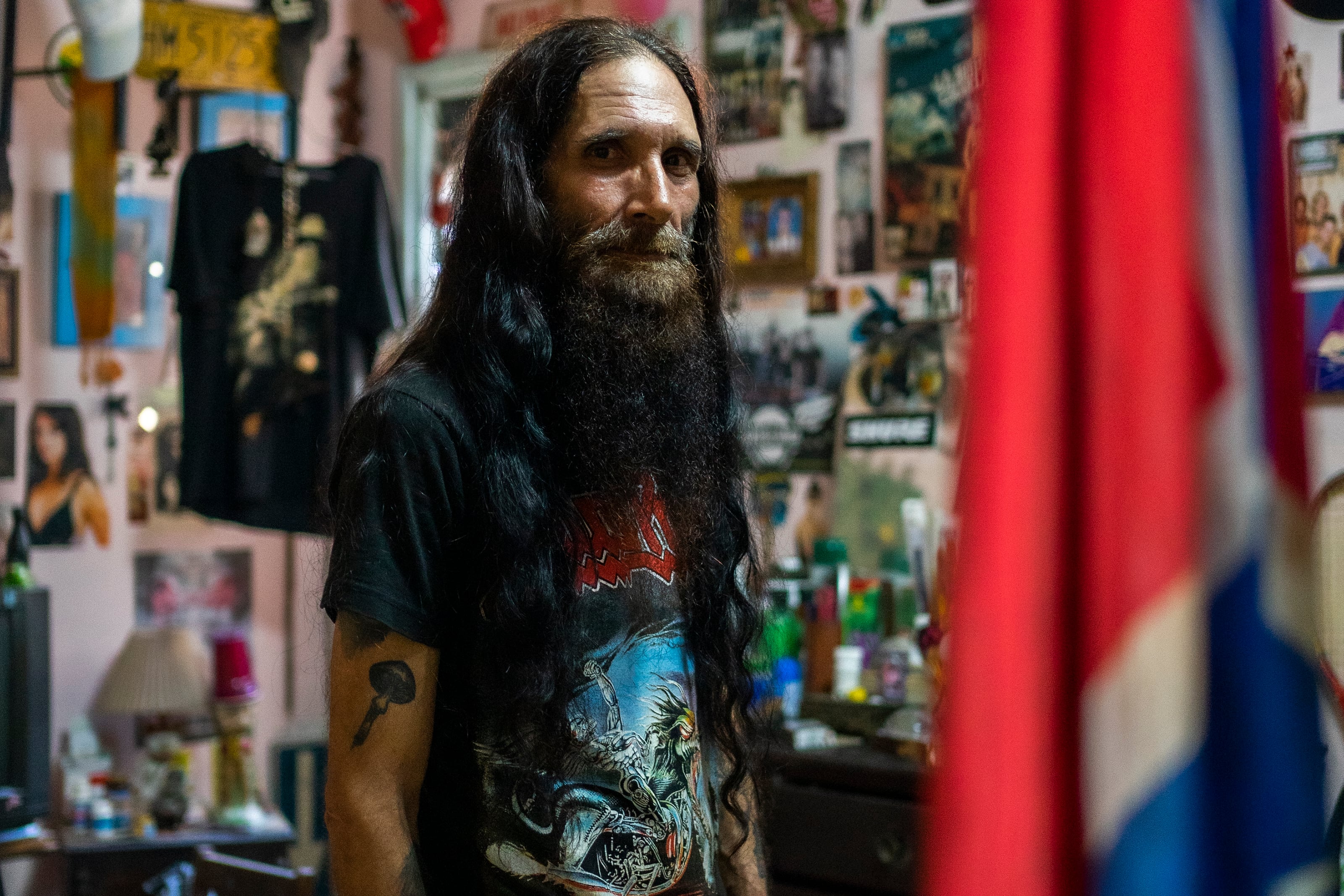 Belkis, La Renegada, fotografiada en Santa Clara en marzo de 2019, sentada en su cama ante pósteres de los Stones y Deep Purple, confesó a Alina: “Somos una secta sin profetas, criaturas domesticadas por el poder, que aún soñamos a escondidas”. Richard, fotografiado en San José en 2018, enteramente tatuado y descalzo frente a su colección de botas desvencijadas, dijo: “La vida es el comienzo de la mentira, la muerte el comienzo de la verdad”. Dyango Pulido, en su habitación de La Habana en cuyas paredes no hay un hueco sin una imagen de un grupo de rock, dijo: “Sepan y estén seguros de que el día que la muerte toque a mi puerta estaré escuchando rock & roll”. Octavio AC/DC (así se hacía llamar en su pueblo de Caibarién) aseguró antes de morir: “Si vuelvo a nacer, seré punk”. La pareja formada por Siurad y Roberto fotografiada en Bauta no dudan en afirmar: “Ser rockeros nos ha hecho más humanos”. David Ozzy se quitaría la vida meses después de que Alina le hiciera el retrato en esta misma habitación de Güira de Melena escuchando a su ídolo Ozzy Osbourne.