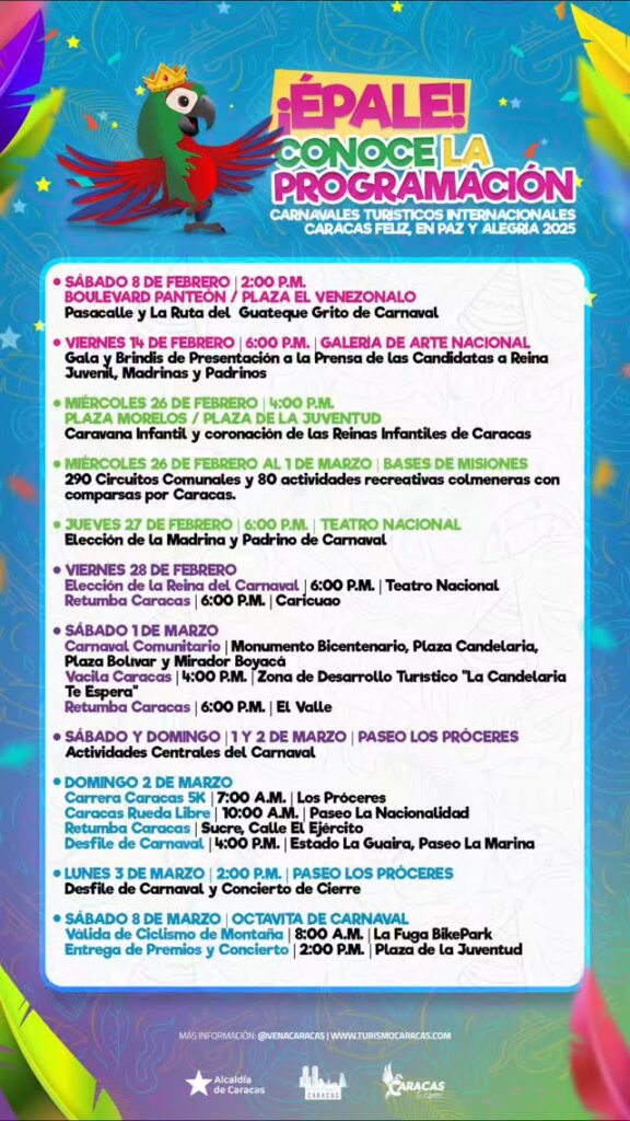 Con esta propuesta, Caracas se prepara para vivir una temporada de carnaval llena de color, música y alegría, donde la cultura y la tradición se fusionan para ofrecer una experiencia inolvidable a todos los que visitan la capital venezolana.